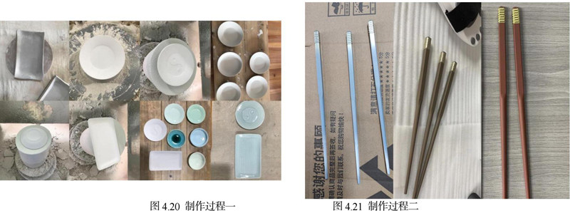 制作流程:选泥-揉泥—拉坯—修坯—-雕刻—吹釉—烧窑—开窑(如图4.20 图4.21所示)