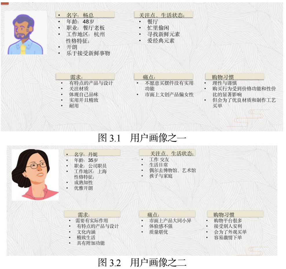 根据前期调研,来制作用户画像。找到目标用户,设计制造更适合用户的产品,提升用户体验,在用户偏好的渠道上与其交互。(如图3.1图3.2所示)