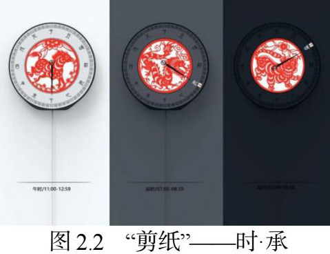 该时钟设计以中国传统剪纸文化和古人日晷计时的十二时辰为设计点,寓意剪纸文化随时间不断传承下去。设计提取剪纸工艺中剪刀元素和十二时辰时钟结合。(如图2.2所示)