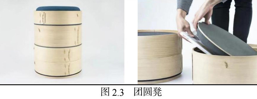 团圆是一套凳子,灵感来自于粤菜。这些凳子被安排在一起,让其拥有更多的空间。下面的软席特性存储空间,可以作为盖子。(如图2.3所示)
