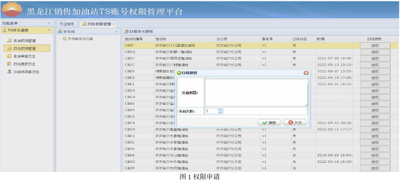 2.2.2 申请权限的审批流程。一是权限申请。加油站申请开启使用控制器权限。如图1 所示: