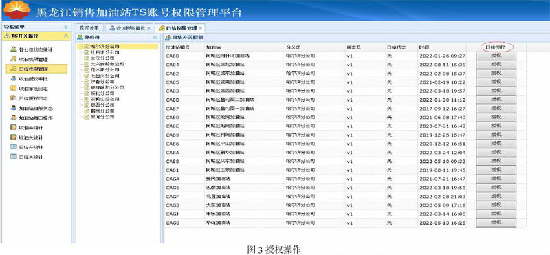 三是授权操作。给加油站开启或关闭执行控制器权限。如图3所示: