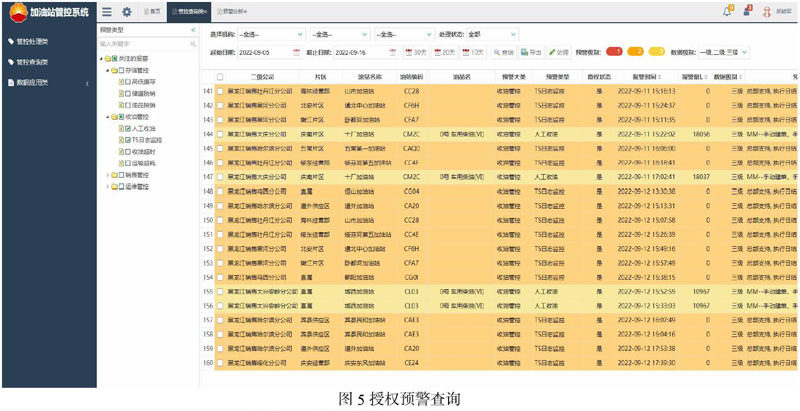 对未经平台授权的操作进行预警,与“加油站管控平台”数据集成,管控平台从站级系统提取加油站人工读数、TS权限使用记录,与授权管理系统进行自动比对,当与授权系统不一致时在管控平台进行报警提醒。通过多系统的数据联动,主动发现非授权操作,提高排查效率,避免人为干预。