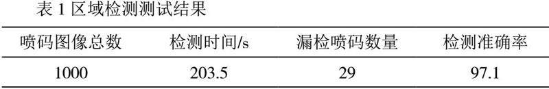 首先对检测模型进行测试,本文利用区域检测模型对1000幅喷码图像进行检测,检测结果如表1所示。从结果可以看出,一共有971幅喷码图像被检测成功,检测率在97.1%。