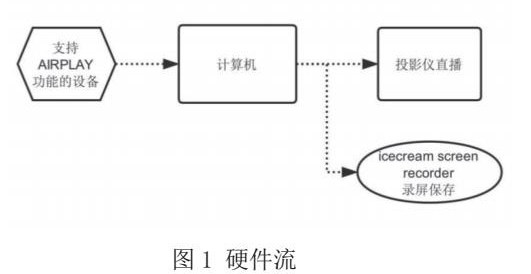 首先,此解决方案具备改造成本低廉和操作简便的优势。如今国内高校基本建立了标准化多媒体教室,教室内均配备计算机、投影仪及网络,同时手机也是目前人人持有的移动终端设备。此方案将手机作为实时拍摄设备,仅需手机安装有屏幕镜像软件即可实现,本文以支持AIRPLAY功能的IOS设备为例,仅需手机与教室计算机连接到同一局域网,便可实现屏幕镜像。与此同时,在计算机端安装录屏软件,在教师演示开始时开启软件,即可记录手机拍摄到的影像,结束演示自动保存影像文件,方便后期编辑。此解决方案几乎无任何新添硬件设备,可极大降低改造成本。