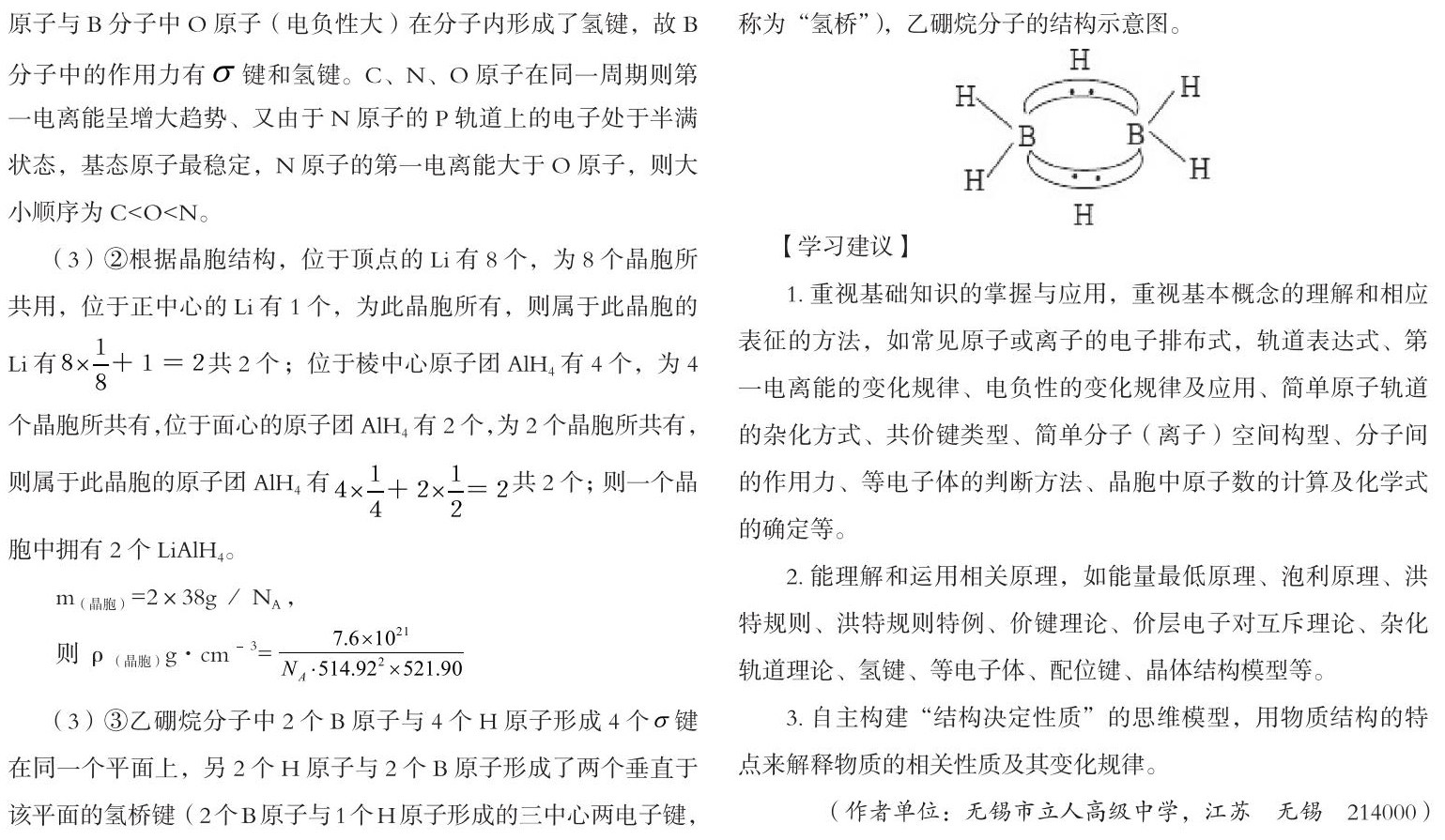 1.重视基础知识的掌握与应用,重视基本概念的理解和相应表征的方法,如常见原子或离子的电子排布式,轨道表达式、第一电离能的变化规律、电负性的变化规律及应用、简单原子轨道的杂化方式、共价键类型、简单分子(离子)空间构型、分子间的作用力、等电子体的判断方法、晶胞中原子数的计算及化学式的确定等。