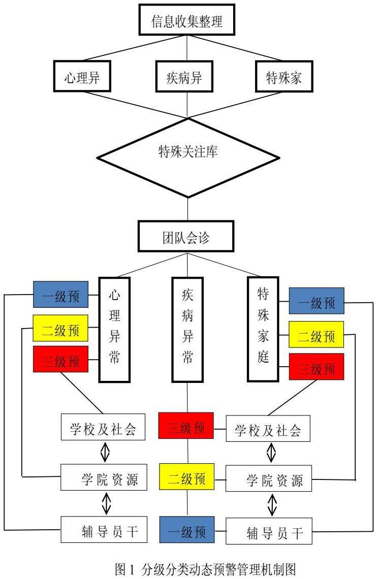 以心理异常、疾病异常、特殊家庭的学生为例,分级分类动态预警管理机制图见图1。