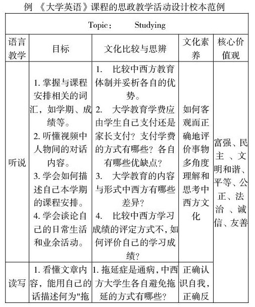 《国家中长期教育和改革规划纲要》中对创新人才培养模式中提议注重学思结合。一是要倡导启发式、探究式、讨论式、参与式教学,帮助学生学会学习;二是要激发学生的好奇心,培养学生的兴趣爱好,营造独立思考、自由探索的良好环境。高职学生的特点之一是直观思维,思辨能力弱,但大多学生有主见,不人云亦云。为此,高职大学英语课程可融入课程思政元素,通过对比分析语言现象和语言所呈现的文化,培养学生良好的思维习惯,使其保持好奇心,正确思维,辩证地看待问题和分析问题[2]。