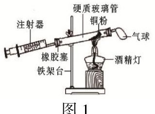 在简单加入药品的基础上,借助活塞的推拉特点,可以帮助气体与固体的反应尽量充分。利用了注射器,不需要担心反应放热或吸热导致装置内气压改变,可等装置恢复室温再读数。例如下图1,在测定空气中氧气含量实验的装置,加热过程中反复推拉注射器活塞,直至反应完全,冷却至室温,活塞稳定后读数,即可测算氧气的体积分数。