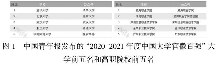 [3]重磅发布!2020-21年度中国大学官微百强榜出炉[EB/OL].[2021-11-01]. https://www.163.com/dy/article/GNO0U7210536N8D8.html.