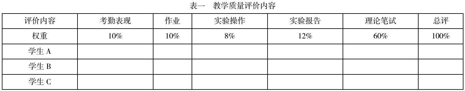 在对课程教学质量评价中,用班级学生的总评成绩,以及总评成绩的分布区间基本代替了对课程教学质量的评价。班级学生的总评成绩对课程教学质量评价起到了决定性作用。