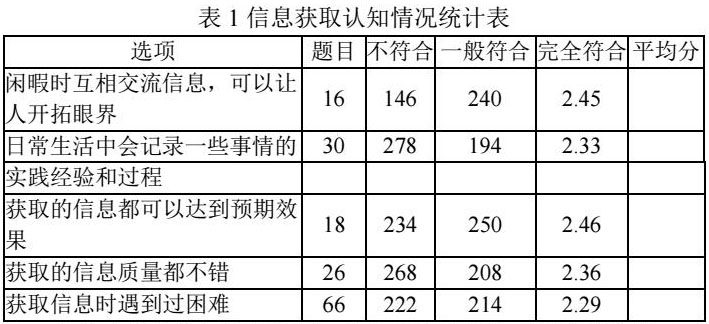 在关于信息获取情景方面,绝大多数人认为互相交流信息,可以开拓眼界,大部分人会利用日常生活的经历与经验获取信息,而且,绝大多数人都认为,其获取到的信息可以达到预期的效果,认为获取到的信息都不错且在获取时遇到过困难。