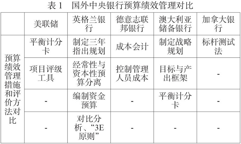 我国关于政府部门预算绩效管理的研究则分为系统改革、运行框架、绩效目标和评价方法等几个方面。提出了诸如建立绩效公开和绩效审计的外部监督制度;绩效评价与结果运用的回应性制度;定性与定量相结合的评价方法等。中国人民银行的预算绩效管理工作以2012年启动预算绩效评价试点为开端,2017年发布《中国人民银行会计财务工作转型规划(2016-2020年)》为推动深入,预算绩效管理工作逐步开展。