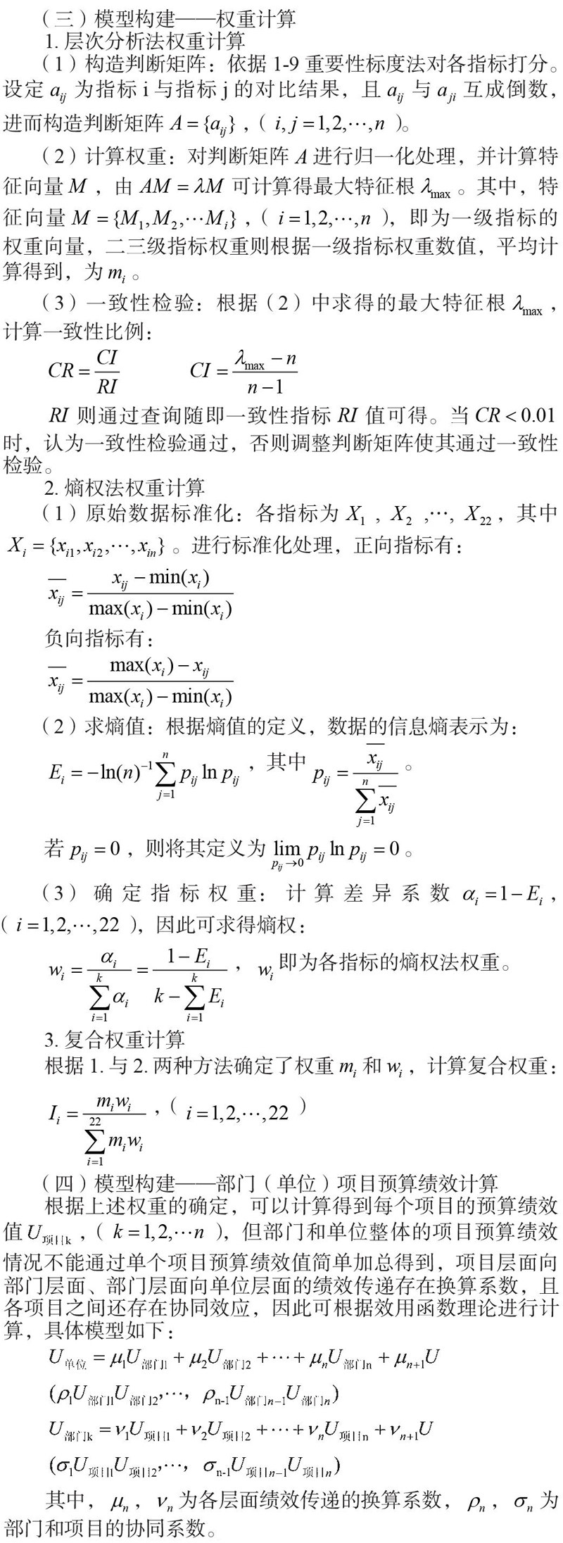 大部分的政府部门、党政机关和事业单位在进行绩效评价时,选择的方法多是层次分析法,本文考虑将层次分析法和熵权法相结合,以实现模型兼顾主观性和客观性。