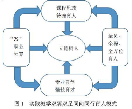 形成以立德树人为核心、“7s”规范和“三全育人”为双翼、专业教学强技育才和课程思政铸魂育人为双足,双翼双足同向同行的专业实践课程育人模式(图1)。