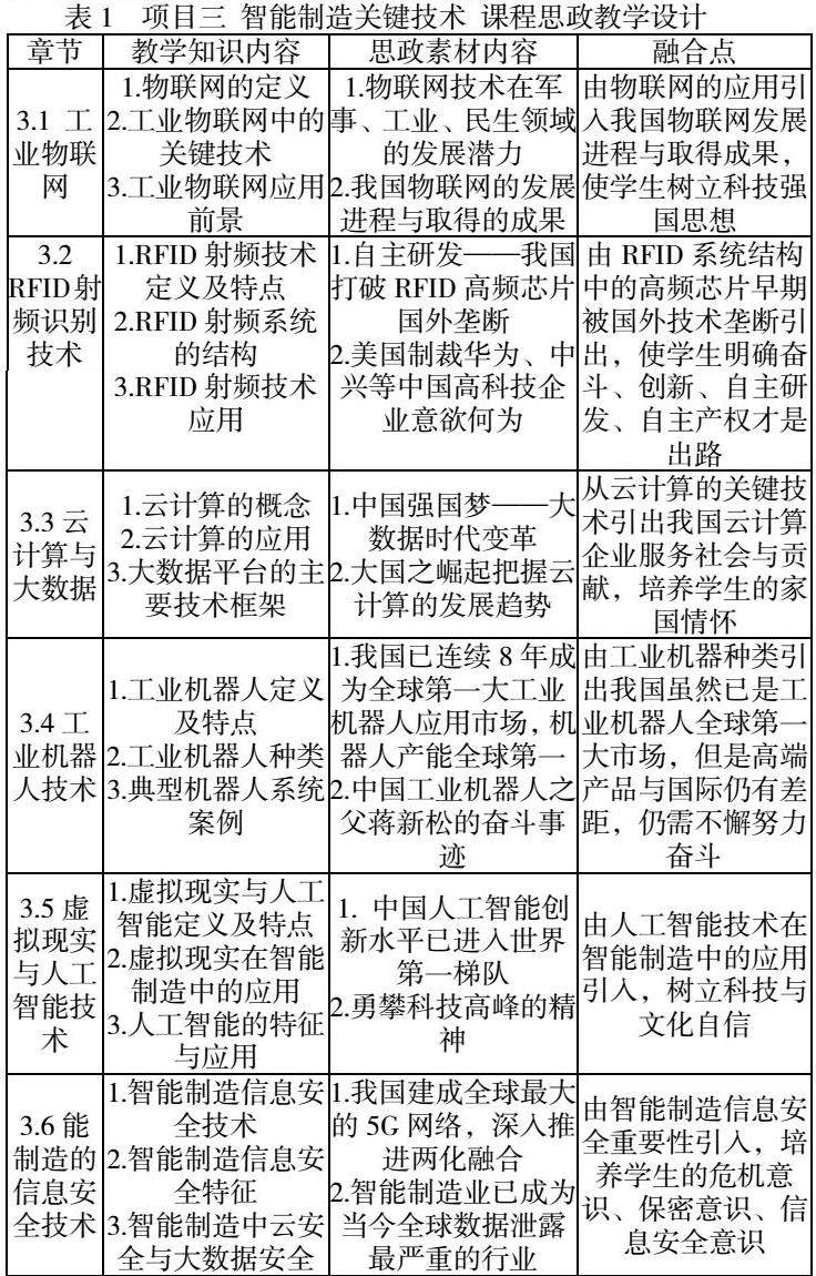 制造业是立国之本,强国之基,兴国之器,在智能制造系统课程课堂教学中实施课程思政,引导学生树立正确的人生观、价值观和世界观,培养学生的思想道德素质尤为必要。通过有效的课程思政,可以培养学生的社会责任感,引导学生关注国计民生,培养学生的家国情怀和奋斗精神,以提升学生的职业素养。