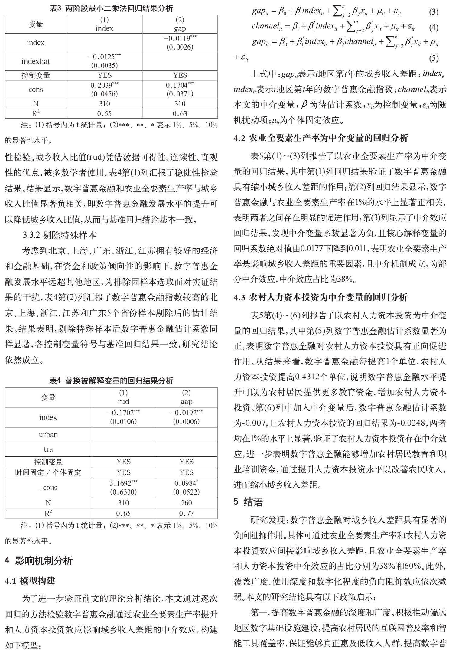 关键词:数字普惠金融;城乡收入差距;农村人力资本投资;农业全要素生产率