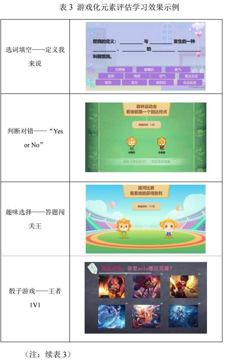 “实践是检验真理的唯一标准”,对于习得的知识和能力若不及时巩固,那么其有效期将大大缩短。练习的目的是巩固所学,而通常教学过程中的练习就是做题,通过习题完成情况来评估学生的学习情况。本课例选择游戏元素的检测方式,利用学生游戏时的竞争意识和好胜心来优化教学评估方式,示例如下表3中所示。
