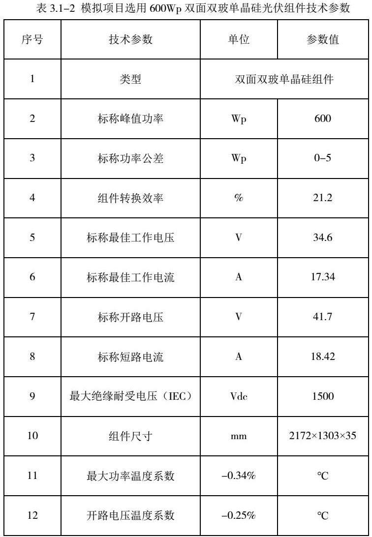 (1)模拟项目选用峰值功率为600Wp的双面双玻单晶硅光伏组件,项目总规划容量为100MWp。