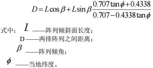 根据GB 50797-2012《光伏发电站设计规范》,确定固定式布置的光伏方阵各排前后间距计算公式为: