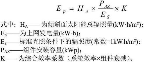 (3)根据《GB 50797-2012光伏发电站设计规范》,光伏发电站上网电量Ep计算如下: