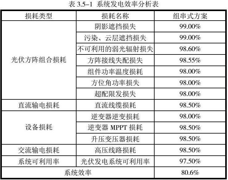 综上所述,在未考虑电站设备元器件老化导致的效率衰减和组件每年衰减情况下,本光伏电站系统总效率80.6%。