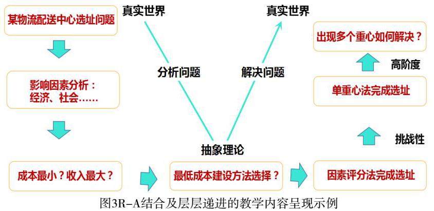R-A结合、层层递进的方式,将真实世界的问题和抽象理论结合起来,改变教学内容的呈现形式。首先基于真实世界的问题—引出案例,其次分析问题、深入机理,再次结合课程的抽象理论构建知识进行理论推理,应用对应的知识解决问题,最后反馈真实世界进行关联、类比和改进再进入下一个案例,具体如图3所示。层层递进的过程呈现,比如在学习生产大纲的制定这部分内容,教师讲解改变工人数、改变库存水平及混合式的制定方法,学生通过所学方法对原例子进行优化,构建出成本更低的生产大纲计划,课后再针对对具体企业问题的解决进行小组的项目挑战,体现了高阶性、挑战性的学生综合能力培养。