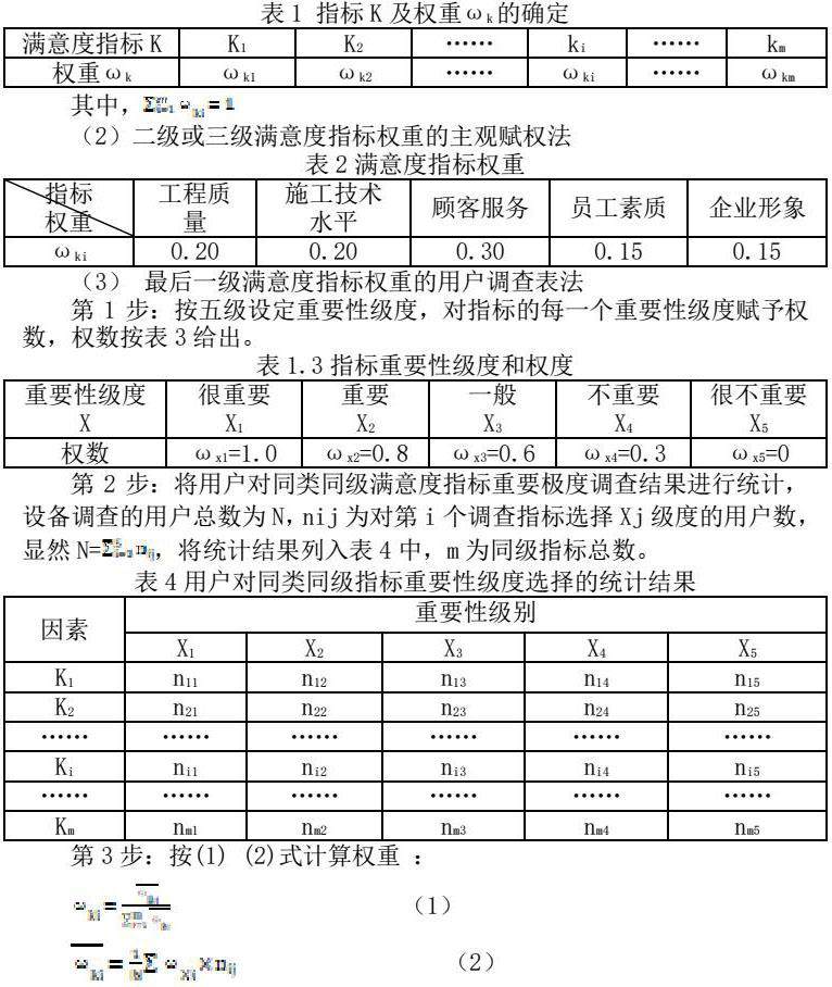 测评指标权重与分配是体系中非常关键的步骤,对能否客观真实地反映顾客满意度指数起着重要作用。由于质量特性、顾客期望、测评时间等不同,各指标对满意度影响程度也不同,应对各指标赋予权重值。