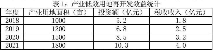 案例:以某开发区为例,根据国土空间规划,制定了产业低效用地再开发路径。经过规划和政策支持,成功将一批低效用地重新规划为科研用地和产业园区,并引进了一批高新技术企业和研发机构,实现了土地资源的高效利用和产业结构的优化升级。
