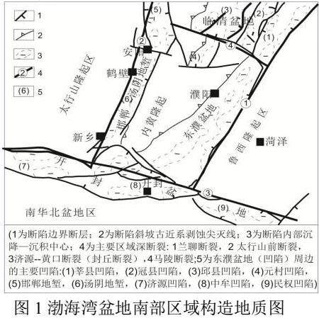 东濮盆地整体构造为北东方向,南部位置边长大概有62公里长,北部大概有16公里,盆地南北边长差距较大,整体面积5300平方千米,形状似等腰梯形。盆地先后经历了加里东运动、海西运动、印支运动、燕山运动及喜山运动等多期构造运动加以改造,地势呈现出北高、南低,东西分带、南北分块的态势。在构造上由于裂陷伸缩等作用力占据主导位置,盆地整体受到来自于地幔向上的力,使得地壳发生伸展变化,最终导致构造盆地呈现出现在的东西长条,南北分区分块的情况。东濮凹陷在之后经历一系列构造活动后,最终内部形成斜坡、隆起等五大块体[11-13]。