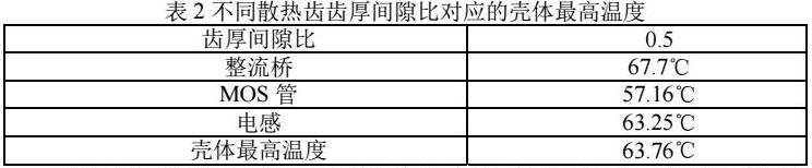 可以看出,控制器壳体及元器件温度均逐渐升高,即该工况下控制器系统最高温度与散热齿间隙比成正比,元器件温度远小于结温。