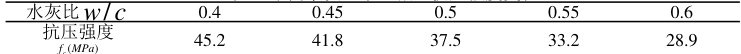 其中 为经验常数,通常由试验数据确定。通过实验调整不同水灰比下的抗压强度可得到如下数据: