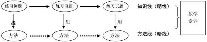 “两翼”的内涵,指以练习例题、教材习题、补充试题等练习内容构成的知识线,此为明线;完成某一类知识或解决某一类问题,从而形成的思维方式,此为暗线,并且贯穿其中。