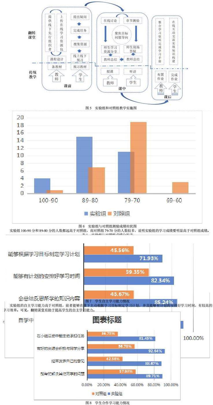 在整个的翻转课堂教学过程当中,实验组的同学在小组之间的学习上积极合作,主动发现问题,同学之间能够有效的进行讨论交流,这有助于学生们调整自身的不足,共同成长,取得更大的进步。