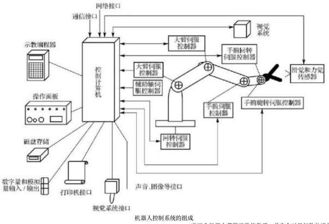 工业机器人的系统组成包括三个主要部分:控制系统、驱动系统和机器人本体,其中控制系统是工业机器人的核心组成部分,其作用是控制工业机器人的运行。驱动系统由电动机、减速器、执行机构和动力装置等部分组成,它是工业机器人的动力来源。而工业机器人本体则包括机械结构、电气结构和控制系统等部分,它是工业机器人的具体表现形式,它直接决定了工业机器人的工作性能和应用效果。