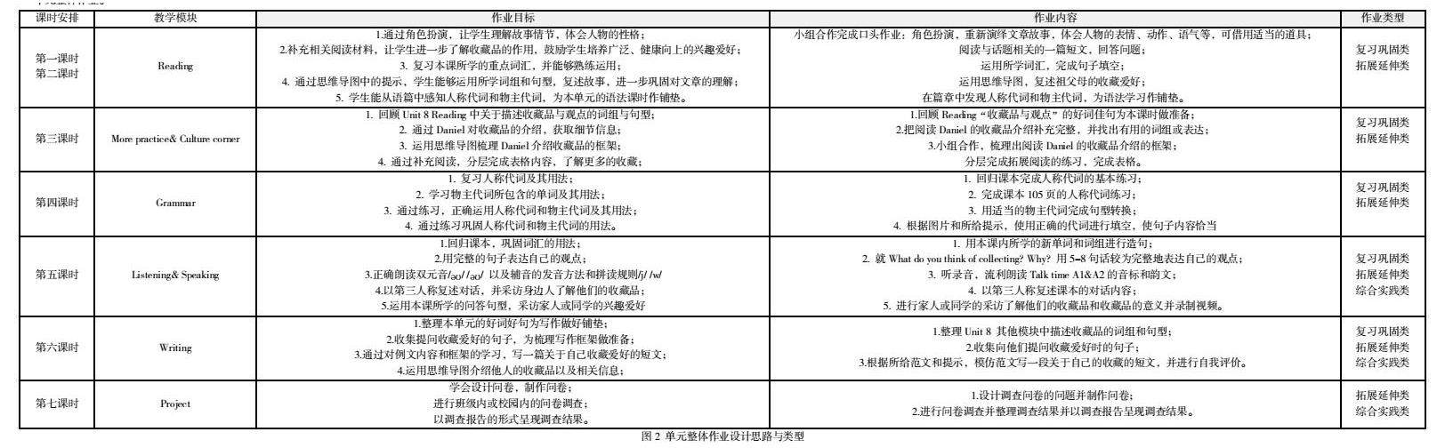 笔者将结合沪教版七年级上册Unit 8 Collecting things的作业设计实践,探讨如何优化单元整体作业设计的策略。