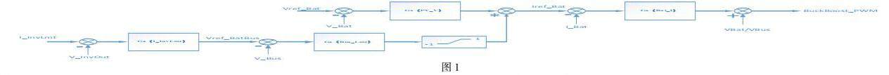 PV Boost Bus电压限制控制器和电池BuckBoost Bus电压限制控制器被控对象都是Bus电容,传递函数为,其中C为Bus电容容值,Bus电压限制控制器采用PI控制器,传递函数为。