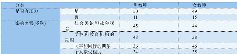 表1 教师是否感受到压力的调查结果