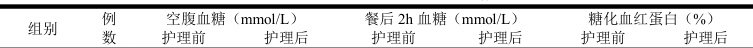 2.1 比较两组护理前后的血糖及糖化血红蛋白水平