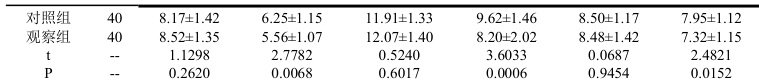 血糖及糖化血红蛋白水平入组时组间差异较小,护理后血糖、糖化血红蛋白水平观察组较对照组更低, p< 0.05。详见表 1