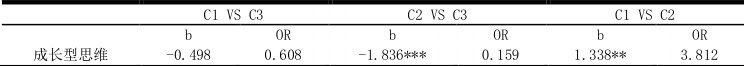 为了了解成长型思维对不同学习投入潜在类别的影响,以潜在剖面的分类结果作为因变量,成长型思维作为自变量进行Logistic 回归,结果如表6 所示。表6 成长型思维对不同潜在类别的影响