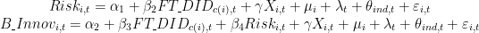 (20 B-Innovi,t=α0+β1FT-DIDc(i),t+γXi,t+μi+λt+θind,t+εi,t (204号其中,i代表企业,c代表企业注册地城市,t代表年份,ind 代表行业。 B-Innoνi,t 为被解释变量突破性创新;1 FT-DIDc(i),t c(i),t 为核心解释变量金融科技冲击: Xi,t 为控制变量集; μi 为企业个体固定效应,吸收不随时间变化的企业异质性特征; λt 为年份固定效应,控制宏观经济周期等全国性冲击; ind,t 为行业-年份联合固定效应,控制不同行业随时间变化的产业政策冲击;8 Ei,t 为随机扰动项。模型标准误在城市层面聚类调整,以缓解同一城市内企业的残差相关性问题。若H1成立,核心系数 β1 应显著为正。