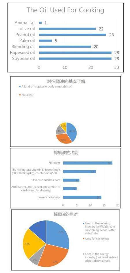 我们还调查了对棕榈油的了解程度,包括棕榈油的概念和棕榈油的用途。调查结果如下: