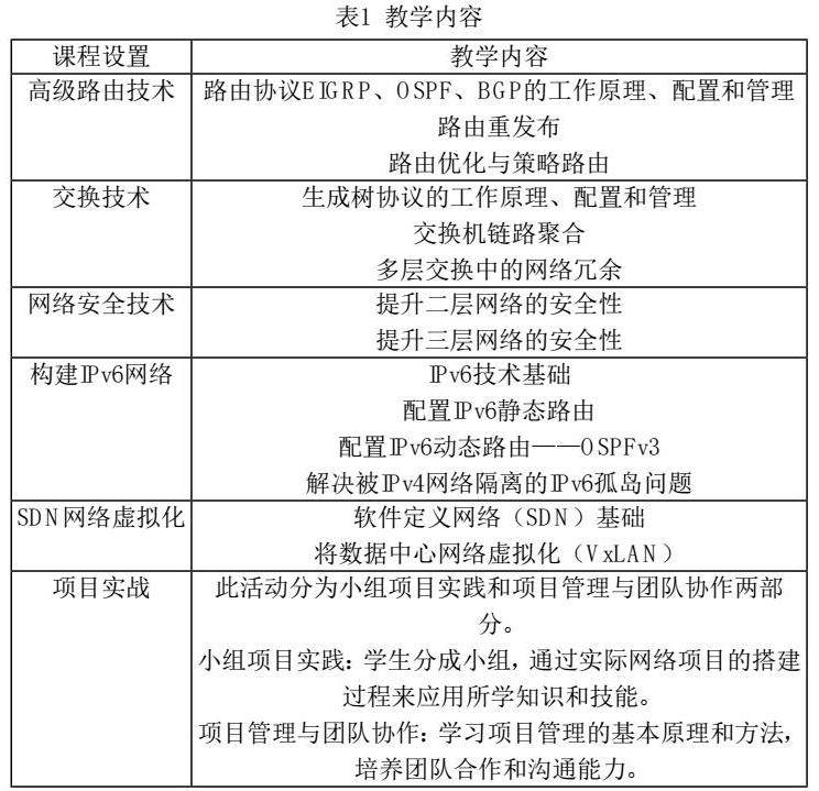 在《高级路由与交换技术》课程的混合教学模式中,我们对教学内容和资源进行了有效的整合。首先,我们根据课程目标和学生需求,对教学内容进行了梳理和重构,划分为不同的知识模块和学习单元。课程设置以下教学内容,具体分别如表1所示。