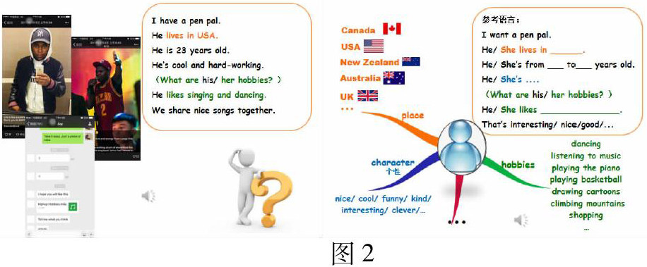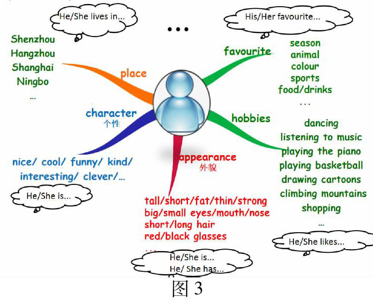 例如: 在教学Lesson 11 My pen pal 时, 教师的拓展环节是先介绍自己的pen pal, 再通过思维导图请学生描述自己想要的pen pal, 学生在此过程中运用导图,对自己理想中笔友进行描述(如图2)。