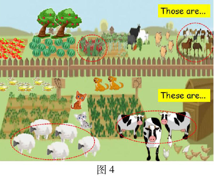 例如: 在教学Lesson 13 At the farm时, 笔者在读后环节,依旧围绕文本内容,以介绍农场为主线,在拓展活动中展示了农场的全貌(如下图),利用招聘信息,延续主题:让学生作为小向导帮助Mr MacDonald介绍农场。在贴近实际生活的情境中帮助学生再次感知、理解词汇和重点句型。真正做到在情境中学,活动中练,生活中用。(如图4)