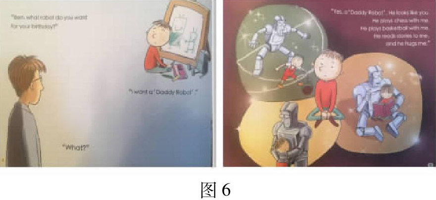 在整体阅读后,教师通过提问引导学生再一次回顾和总结问题结构,加深他们对文本特征的把握和对故事建构的理解。按照绘本的文体特征实时教学,提高了教学的适切性。阅读了这个绘本故事之后,很多同学都感同身受,表示示自己的父母也很忙碌,陪伴他们的时间也很少,也很想要这样一个 Daddy Robert(Mummy Robot)。教师抓住这样情感点,与学生展开交流,请同学们谈谈如果有这样一个机器人,最想它陪伴自己做什么呢?