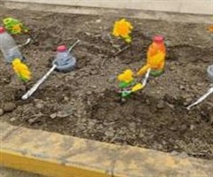 洗衣液瓶盖打孔若干,用于浇水,瓶身顶部开一个小孔,用于控制水流。