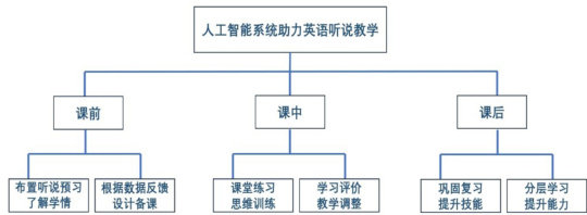 具体方案可分为(1)课前:在听说授课之前教师可根据教学需要在人工智能系统上(Deep-Seek Chat、如翼课网、科大讯飞的 AI 教师助手、AI 听说课堂等)。布置不同类型的听说预习任务,学生根据自己的能力先进行自主学习,学生可以利用 AI 语音助手进行听说预习训练。系统能够实时纠正发音错误,并针对发音准确度、流利度等进行多维度的评分,学生可以反复练习直至达到标准。同时,教师端会生成班级语音报告,帮助教师精准备课并能更准确地把握教学重点和难点。(2)课中:在传统的英语听说教学过程中,教师很难同时关注所有学生的听说练习,而人工智能助力于英语听说教学课堂可以有效优化这一教学过程。例如:科大讯飞研发的 AI 听说课堂软件让教师在听说教学过程中可以依托于教室电子屏幕,该软件借助于讯飞先进的语音识别技术和学生答题器,使得教师和学生在普通教室内就可以进行人机互动的语音练习。练习结束后,软件会对每一个学生的本次练习立即生成一个报告讲评。讲评可以从参与度、流畅度、完整度、发音流畅度等多维度对每个学生的练习进行评估。教师可以根据报告调整教学动态,实施分层教学最终达到提供课堂效率、因材施教的教学目的。(3)课后:教师可以根据问卷调查,和软件数据反馈来借助于口语 100,翼课网等智能软件分层并且多样化的布置作业,比如课堂上完成较好的同学可以完成趣味配音的作业,而在课堂上对某些单词发音掌握不太好的同学可以再重复练习单词或句子跟读、以及 AI 对话等。这样多样分层的设计作业不仅能大大提高学生的学习积极性和兴趣,还能满足不同层次学生的学习需求,不同层次地提升学生的技能,满足个性化发展。