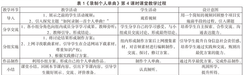下面以“录制个人单曲”项目为例,阐述基于“数字化学习与创新”素养培养的高中信息技术课堂项目式教学活动的开展。